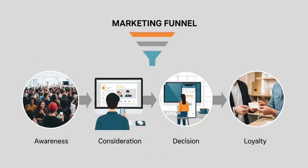 That’s funnel marketing: guiding people from “just looking” to “ready to buy” with content and messaging that meets them where they are.