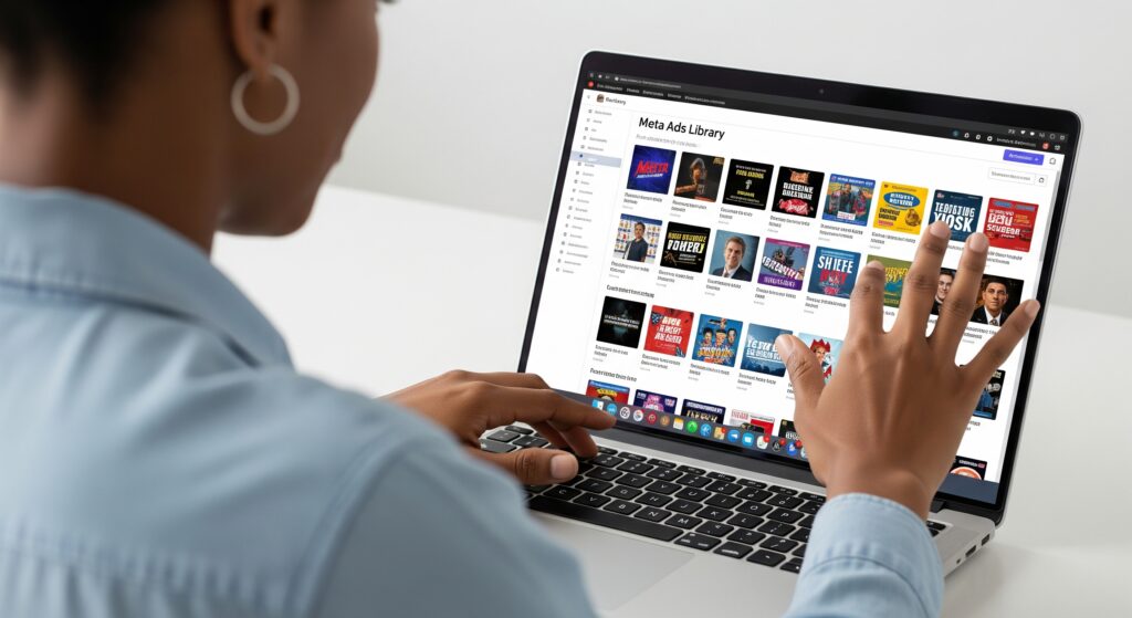 Thanks to tools like Meta Ads Library and Google Ads Transparency Center, you don’t have to guess what they’re doing, you can see it. Clearly. For free.